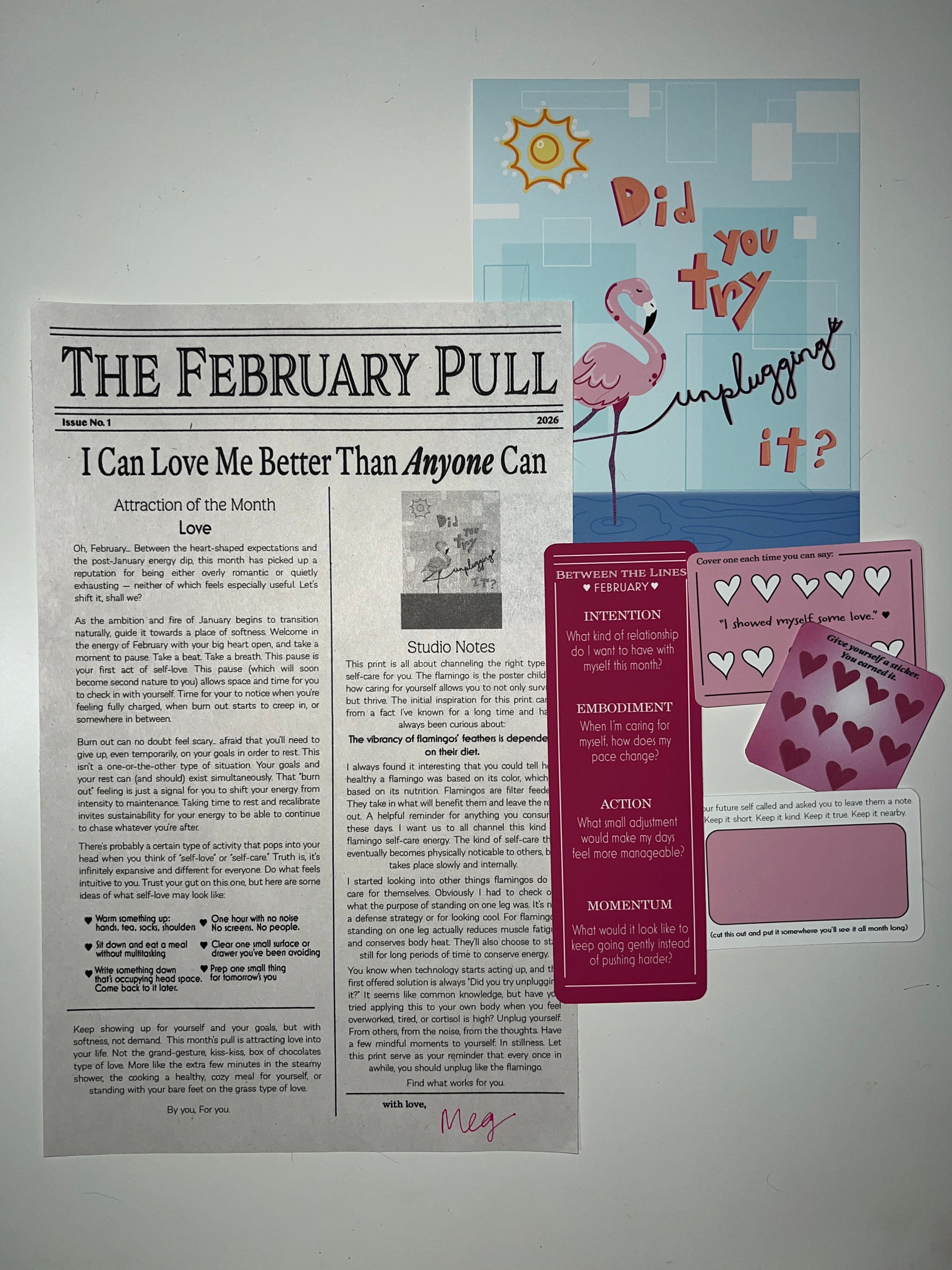 The Monthly Pull is a monthly print ritual for those who want to live a little slower. It's thoughtfully designed art that invites you to notice, feel, return to yourself, and remember that wellness doesn’t have to be so serious.